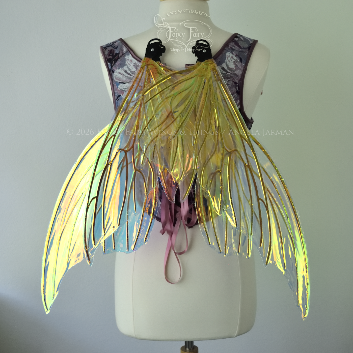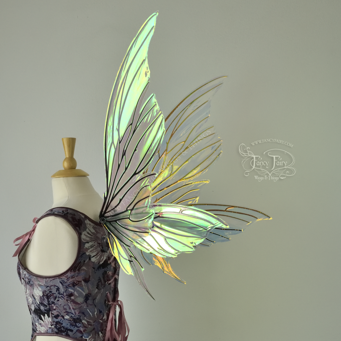 The new set (above) is a hybrid of the Aphrodite fairy wings on top, with the Aynia bottom panels below. They're done in the clear Diamond Fire film with black veining. They have some tiny tattered holes along the edges for a realistic worn look.